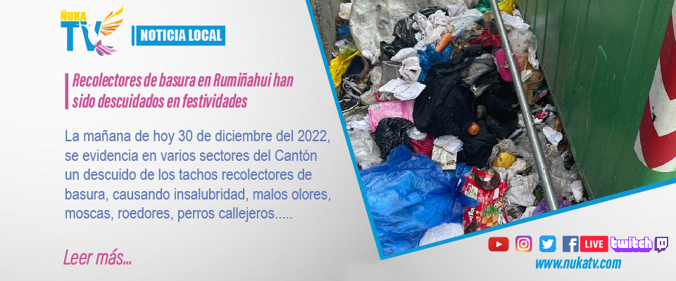La mañana de hoy 30 de diciembre del 2022, se evidencia en varios sectores del Cantón un descuido de los tachos recolectores de basura, causando insalubridad, malos olores, moscas, roedores, perros callejeros que asechan los tachos.